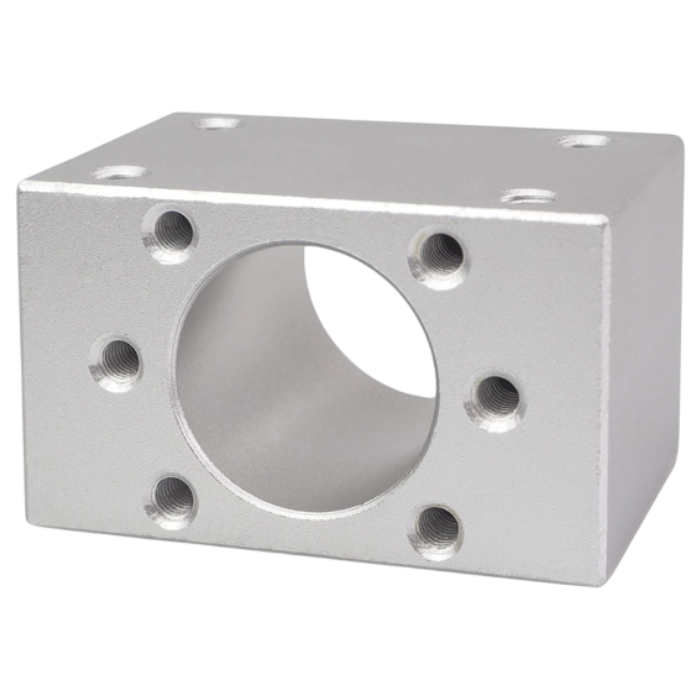 Держатель для гайки ШВП DSG1204 изготовлен из алюминия и служит для монтажа гайки и передвигаемой детали. Поверхности отшлифованы. Предусмотрены резьбовые отверстия для крепления держателя к плоскости и для крепления гайки.