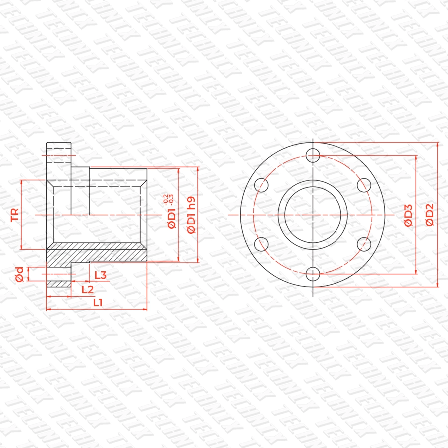 Гайка SFR 12-3-D TECHNIX PRO предназначена для винтов с трапецеидальной резьбой TR12x3 с правым направлением резьбы. Точная посадка и стабильная резьбовая пара обеспечивают долговечность и плавность хода без заеданий и люфтов.
