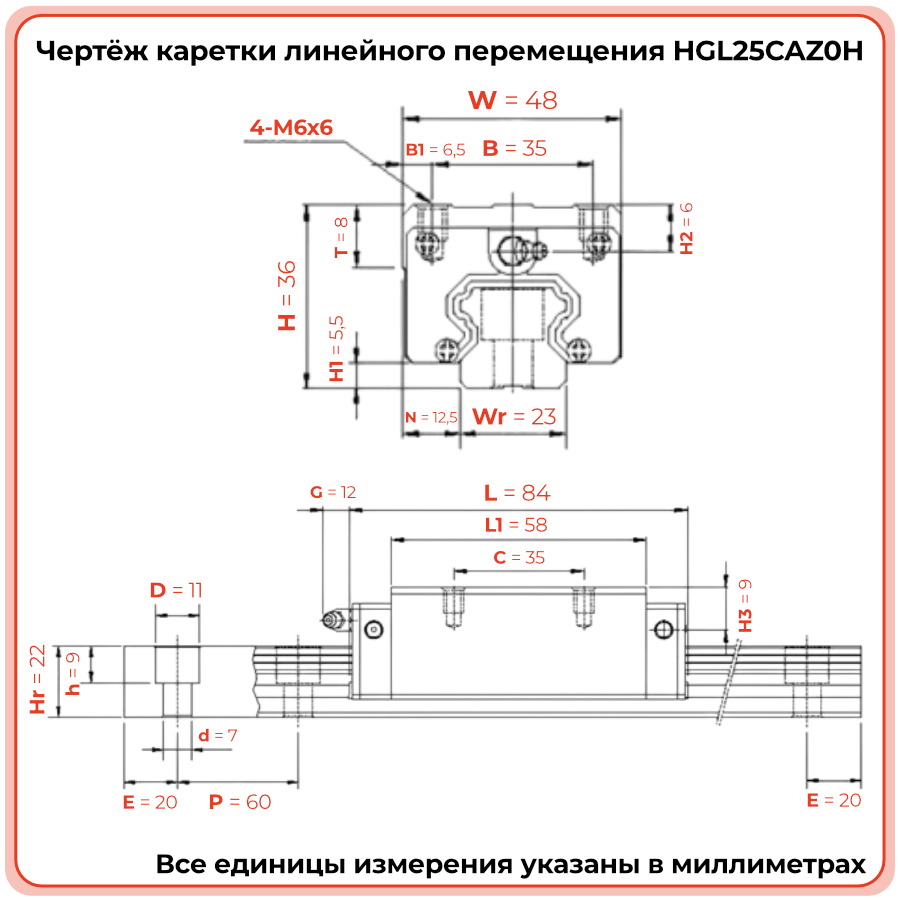 Линейная каретка HGL25CAZA0H TECHNIX — низкопрофильный блок направляющей для промышленных систем