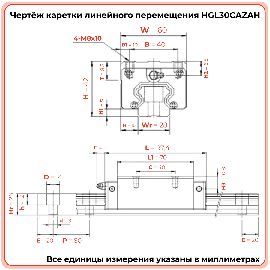 Линейная каретка HGL30CAZAH TECHNIX — низкопрофильный блок направляющей для промышленных систем