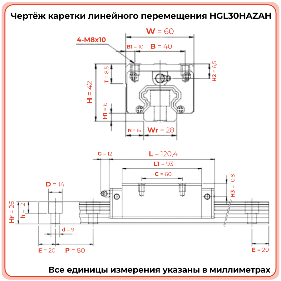 Линейная каретка HGL30HAZAH TECHNIX — низкопрофильный блок направляющей для промышленных систем