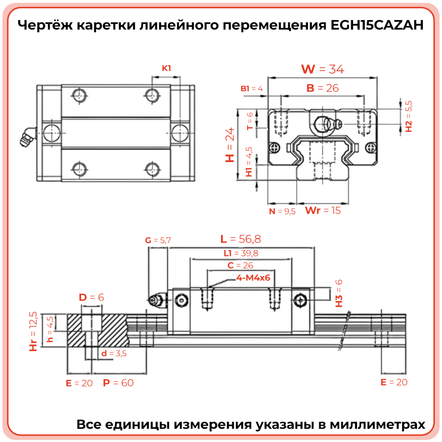 Каретка EGH15CAZAH (низкопрофильная) TECHNIX — это точная и компактная линейная каретка прямоугольного типа, предназначенная для работы в системах с ограниченным монтажным пространством, где важна высокая точность и стабильность перемещения. Эта модель идеально подходит для направляющих шириной 15 мм и используется в ЧПУ-станках, автоматизированных линиях, лабораторных установках и других высокоточных механизмах.