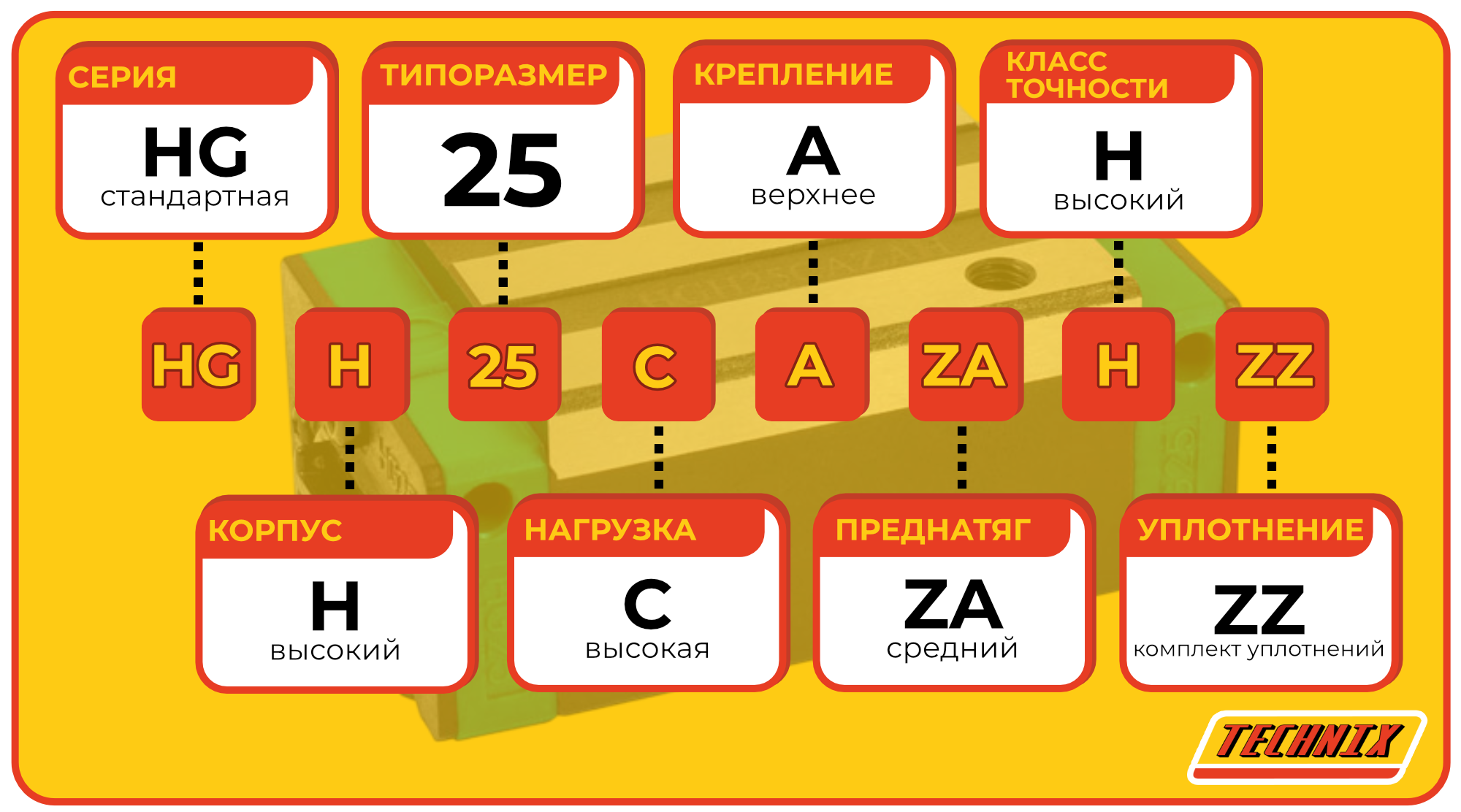 Линейная каретка HGH25CAZAHZZ TECHNIX — высокий блок направляющей для промышленных систем