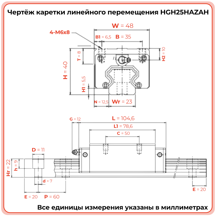 Линейная каретка HGH25HAZAH TECHNIX — высокий блок направляющей для промышленных систем