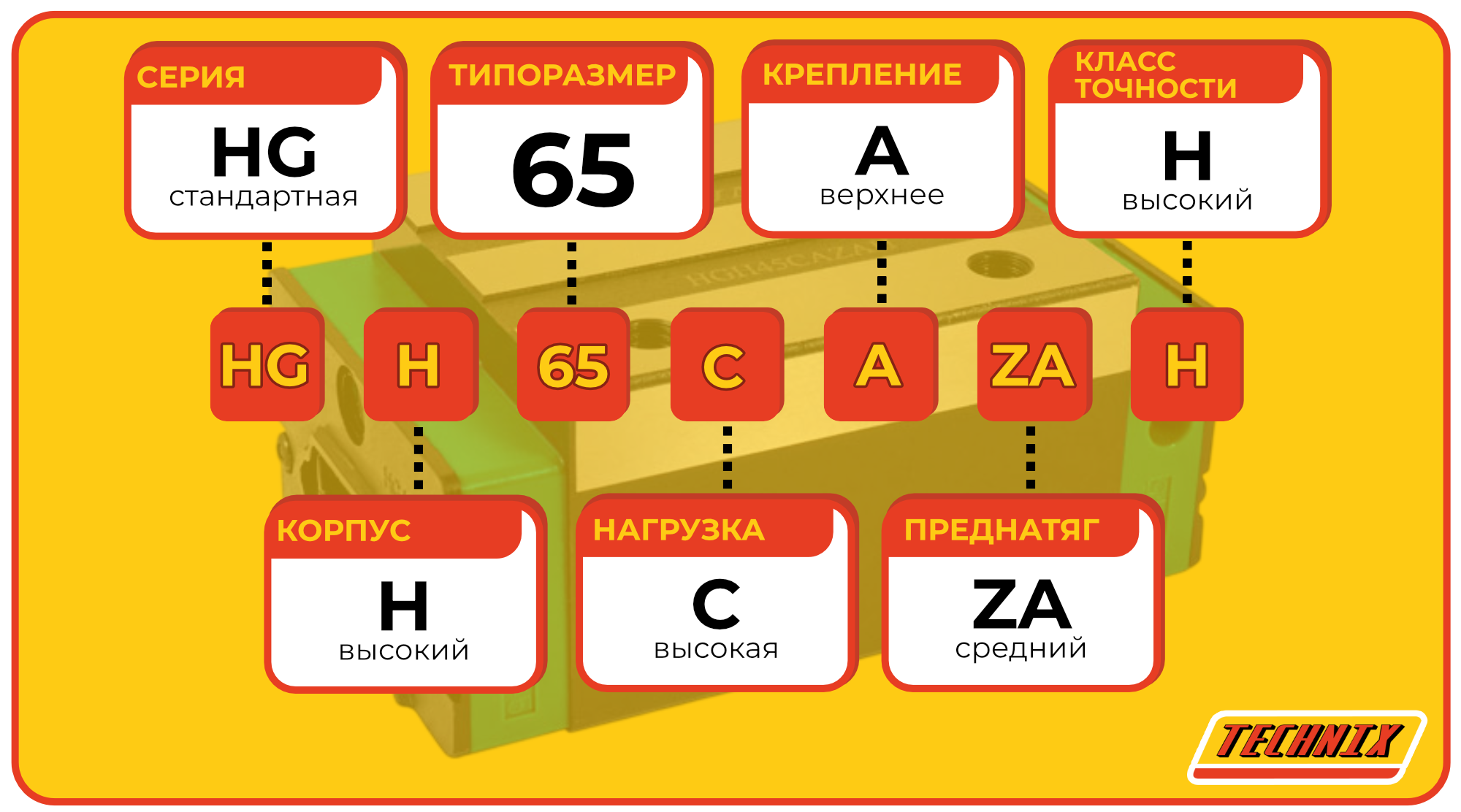 Линейная каретка HGH55CAZAH TECHNIX — высокий блок направляющей для промышленных систем