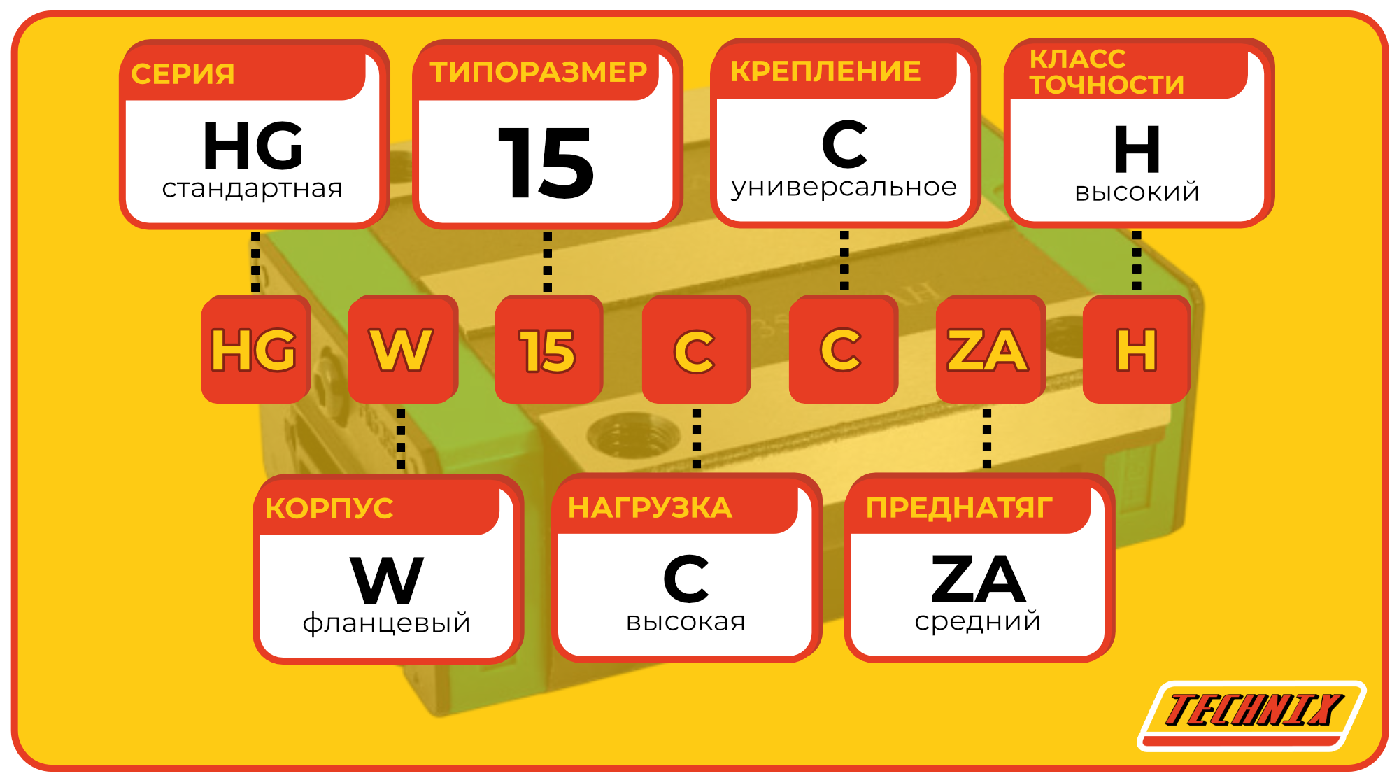 Линейная каретка HGW15CCZAH TECHNIX — широкий блок направляющей для промышленных систем
