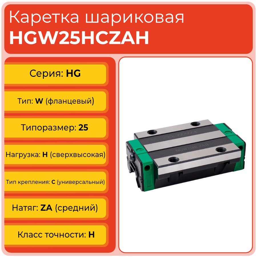 Линейная каретка HGW25HCZAH TECHNIX — широкий блок направляющей для промышленных систем