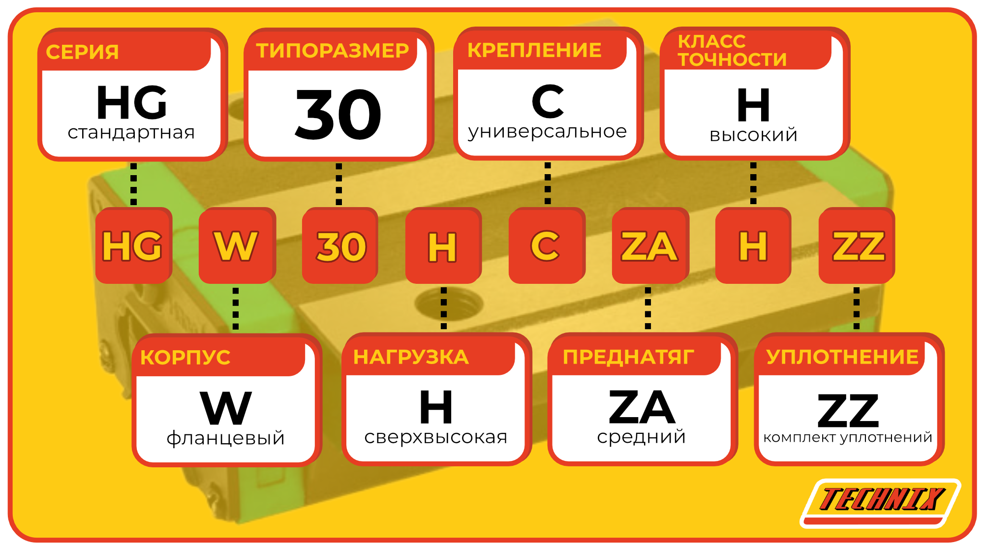 Линейная каретка HGW30CCZAHZZ TECHNIX — широкий блок направляющей для промышленных систем