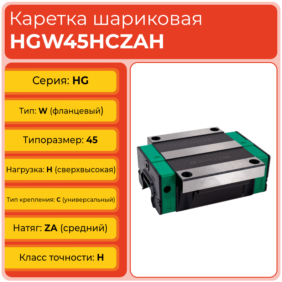 Линейная каретка HGW45HCZAH TECHNIX — широкий блок направляющей для промышленных систем