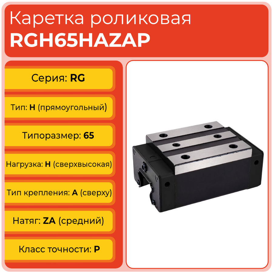 Каретка RGH65HAZAP TECHNIX используется в самых тяжёлых промышленных условиях. Высокая каретка под сверхтяжёлую нагрузку (H), с креплением сверху (A), средним преднатягом (ZA) и прецизионной точностью (P). Подходит для систем, где требуется максимальная устойчивость и точность перемещения.