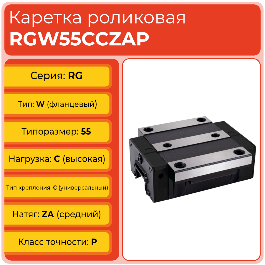 Каретка RGW55CCZAP TECHNIX — роликовая линейная каретка с высокой жёсткостью