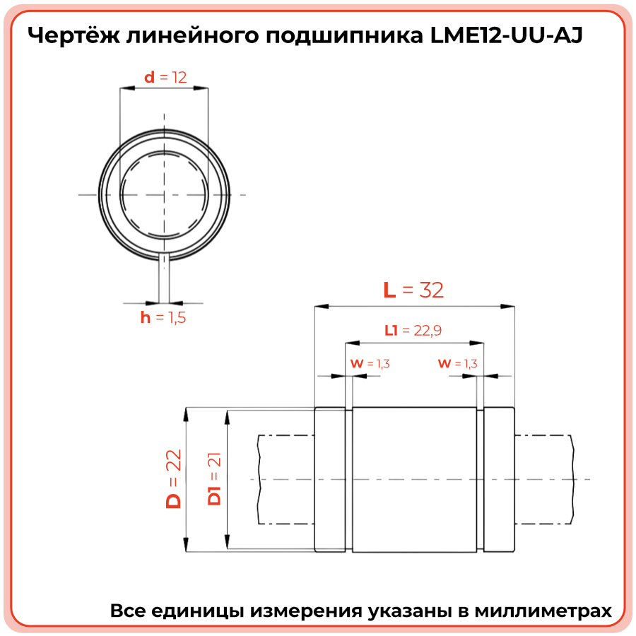 LME12-UU-AJ направляет вал 12 мм с высокой жёсткостью и низким трением. Возможность регулировки натяга позволяет без разборки узла восстановить точность хода после длительной эксплуатации в подающих системах станков и координатных столах.