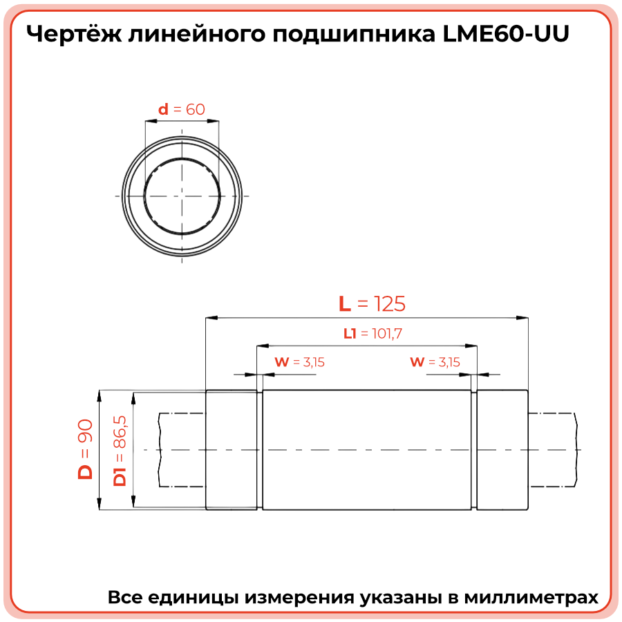 | Универсальное обозначение | LME60UU / LME60-UU | Полный аналог по размеру |