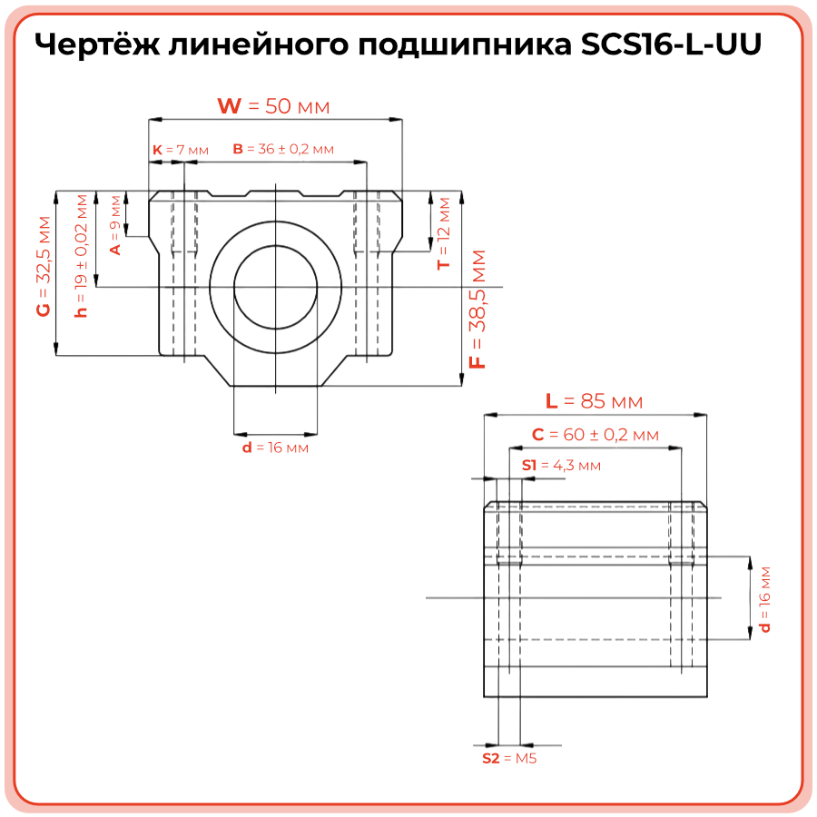 - диапазон размеров: от SCS12LUU до SCS50LUU;