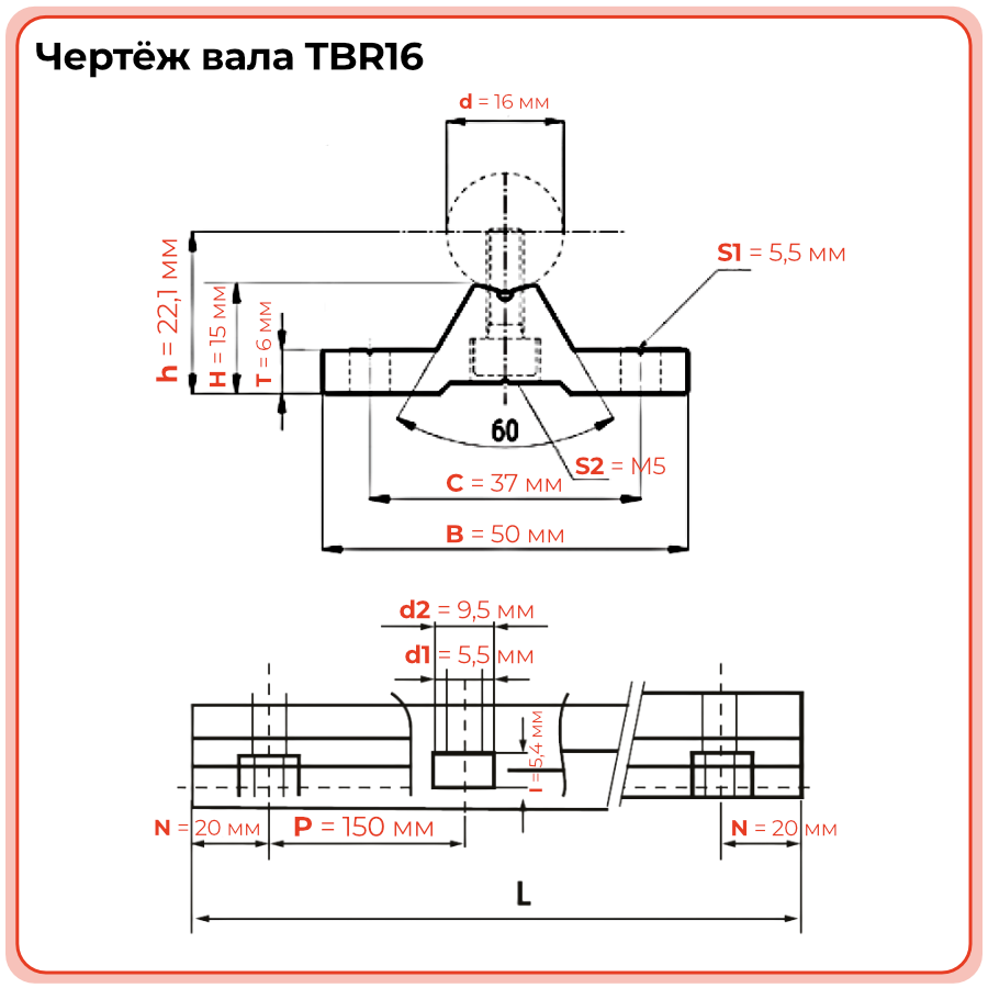 Межцентровое расстояние отверстий под крепёжный винт P, мм