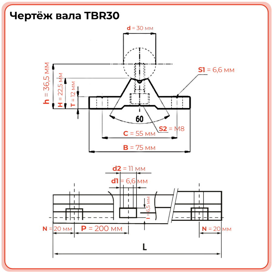 Межцентровое расстояние отверстий под крепёжный винт P, мм