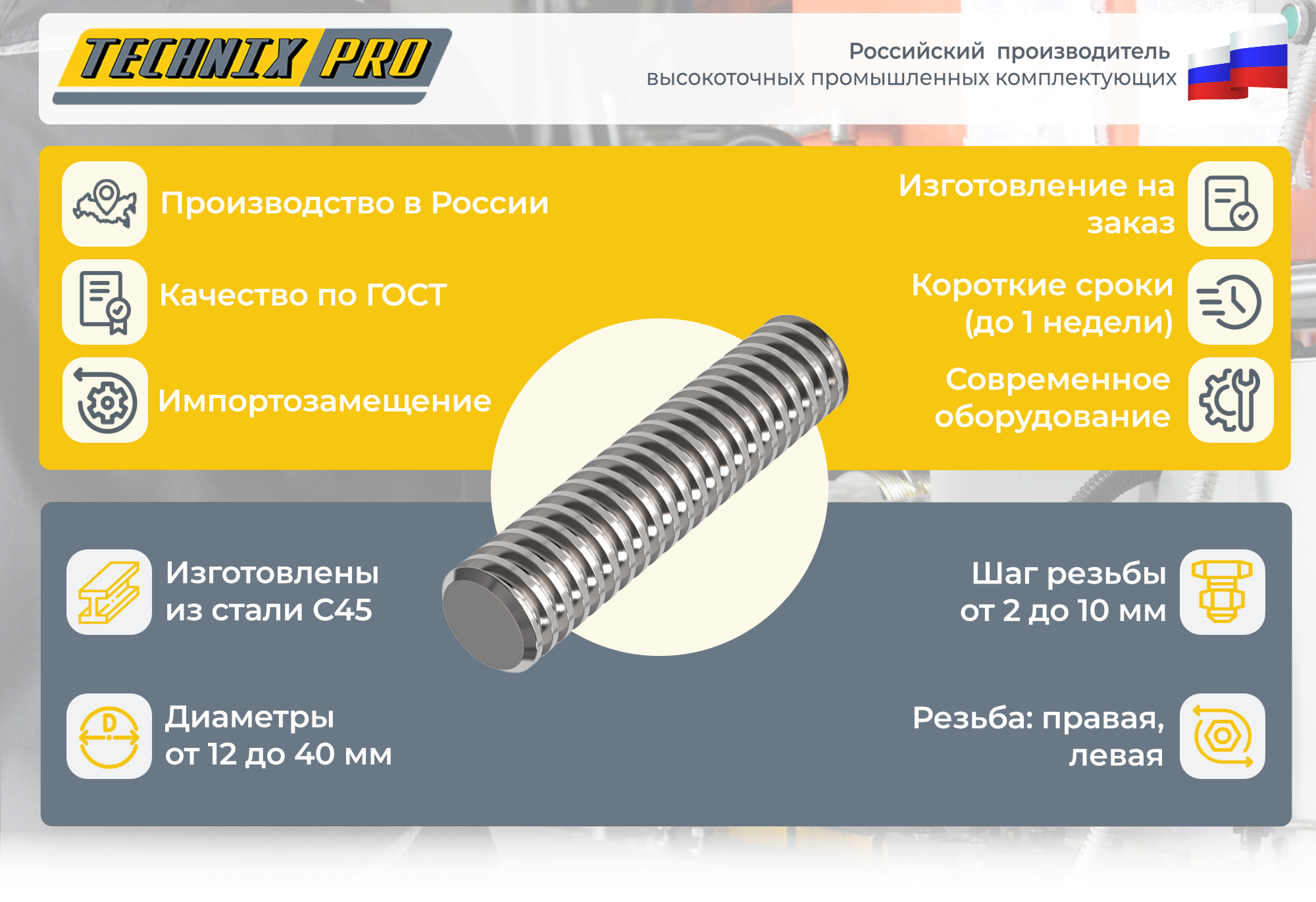 Планируете использовать винт с трапециевидной резьбой в промышленной сборке? У нас можно трапециевидные винты купить по цене производителя — с быстрой отгрузкой, гарантией качества и профессиональной поддержкой. Выбирайте TECHNIX PRO — надёжность, проверенная производством.