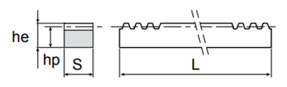 Модуль M, мм | hp, мм | he x S, мм | L, мм | |||||||
