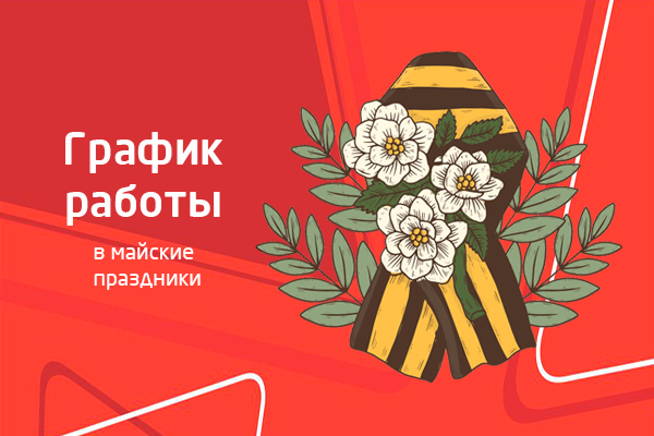 Поздравляем вас с наступающими майскими праздниками, праздником Труда и днем Победы, и обращаем ваше внимание на график работы с 28 апреля 2024 по 12 мая 2024.