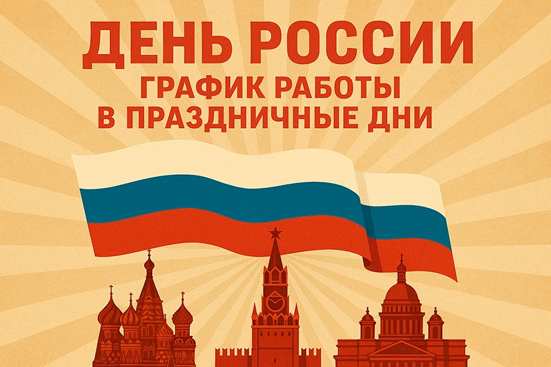 Поздравляем вас с наступающим Днем России, и обращаем ваше внимание на график работы с 11 по 15 июня 2025.